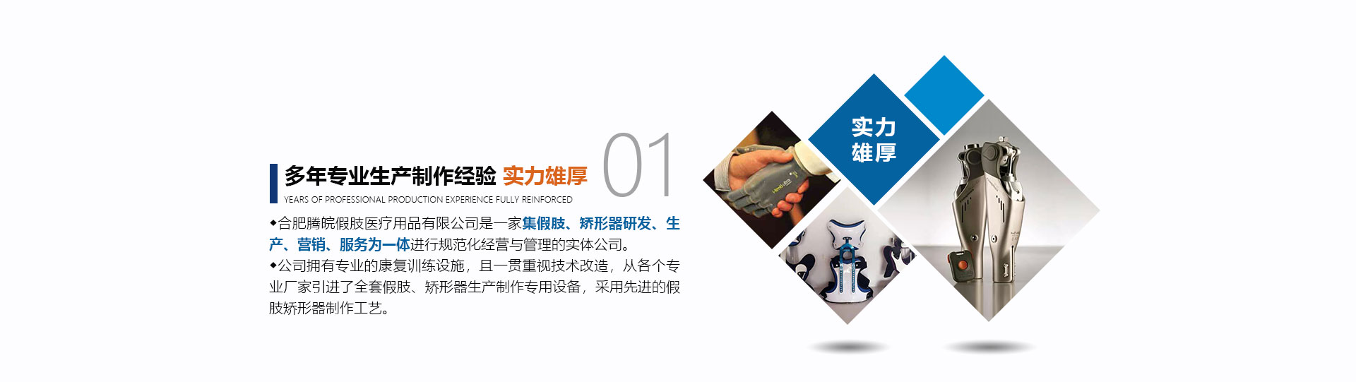 合肥騰皖假肢醫(yī)療用品有限公司于2013年在合肥市工商行政管理局核準(zhǔn)下正式成立,注冊(cè)資本1200000元,公司主營(yíng)假肢臨床裝配、固定支具和兒童矯形器的臨床研發(fā)與生產(chǎn)銷(xiāo)售,公司經(jīng)過(guò)幾年快速發(fā)展,目前在合肥市共有兩個(gè)康復(fù)中心,即廬陽(yáng)區(qū)矯形康復(fù)中心和瑤海區(qū)假肢康復(fù)中心,康復(fù)面積逾1000平米。公司康復(fù)設(shè)備齊全,引進(jìn)了測(cè)量取型儀、激光對(duì)線(xiàn)儀、進(jìn)口真空泵、假肢銑床、假肢防塵打磨機(jī)、制作技術(shù)雄厚,其中2名持證假肢制作師,特聘德國(guó)奧拓博克假肢制作1名,康復(fù)師1名,矯形師5名。公司于2014年取得安徽省民政廳審核的假肢與矯形器生產(chǎn)裝配的資質(zhì),安徽省食品和藥品監(jiān)督管理局核發(fā)的矯形器生產(chǎn)和銷(xiāo)售許可證。我公司目前是...